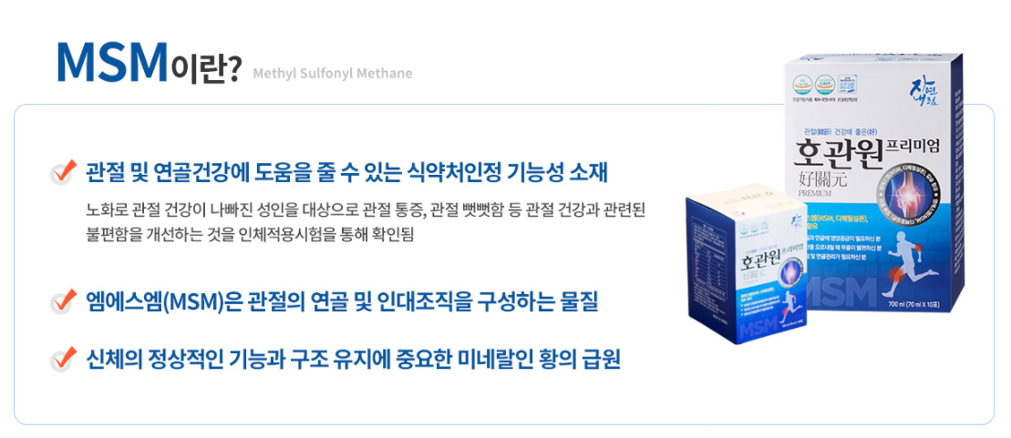 엠에스엠은 관절의 연골 및 인대조직을 구성하는 물질로