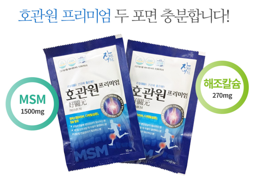 동으로 관절이 불편하거나, 평소 관절사용이 잦으시거나, 갱년기 여성분, 노후 관절 건강을 대비하시는 분들에게 관절 건강을 지키고 싶은 분들께 호관원 프리미엄을 추천드립니다.