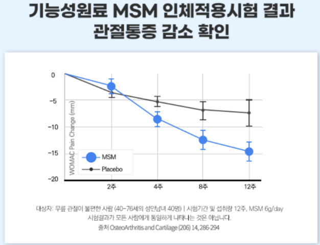 기능성원료 MSM을 적용한 결과 관절 통증이 감소했습니다.
