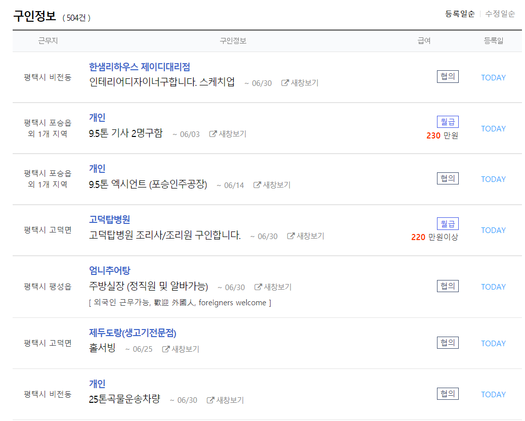 고덕신도시가 있는 평택시 일자리 구하는 방법을 알려드립니다.