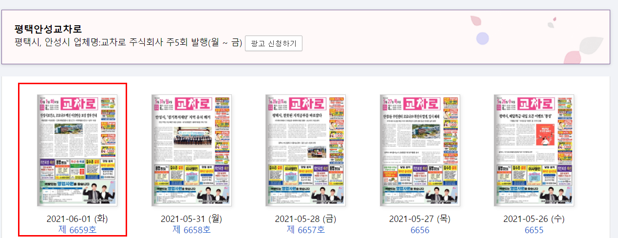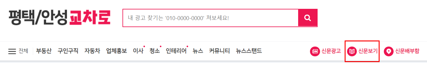 평택시 교차로 홈페이지 하단에 신문그대로보기 메뉴가 있습니다.