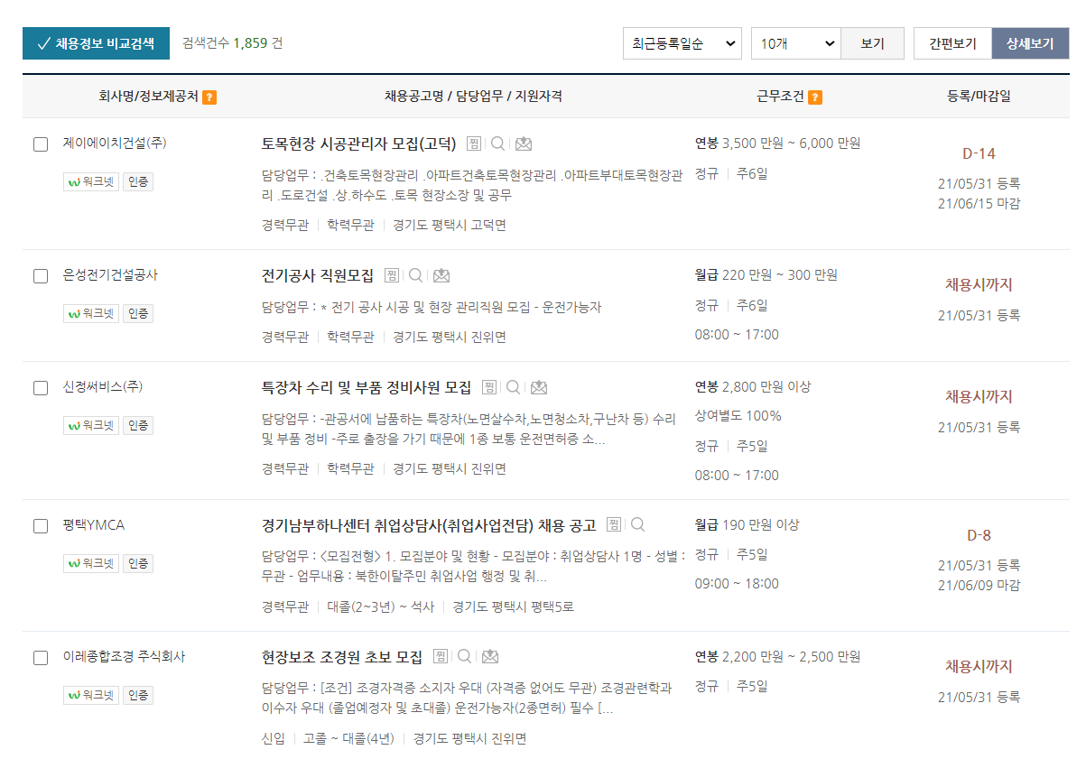 한눈에 최신 일자리정보를 확인할 수 있어 편할때가 많습니다.